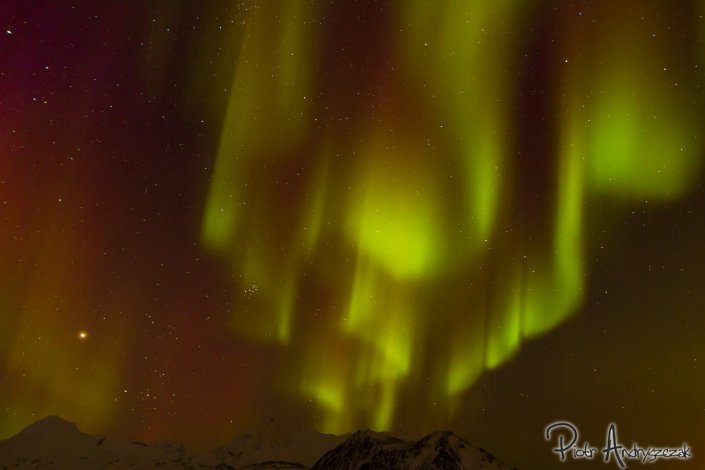 Zjawisko zorzy powstaje w wyniku oddziaływania elektrycznie naładowanych cząstek wyrzucanych przez Słońce na rozrzedzone gazy wysokich warstw atmosfery, głównie jonosfery, czyli warstwy rozciągającej się na wysokości ok. 80-85km nad powierzchnią Ziemi. Kolor zorzy zależy od rodzaju pierwiastków, których atomy są pobudzane przez wiatr słoneczny i zazwyczaj jest to zielony lub czerwony. Do tej pory podziwialiśmy zielone zorze, natomiast wczoraj nad pobliskim Lodowcem Hansa po raz pierwszy pojawiła się czerwona. Wrażenie potęguje rozgwieżdżone niebo i wszechobecna cisza – taką ciszę słyszy się w niewielu miejscach.